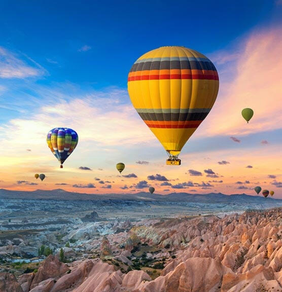 استمتع بجمال رحلاتنا إلى كابادوكيا، حيث نقدم لك تجربة فريدة في قلب تركيا. انطلق من إسطنبول مساء كل يوم جمعة، في رحلة مدهشة تستمر بين 9 و11 ساعة مع استراحات مريحة على الطريق:عند وصولك إلى كابادوكيا سيكون بامكانك اخذ قسط من الراحة في الفندق أو الانضمام إلى نشاط رحلة المنطاد/البالون المشهور.